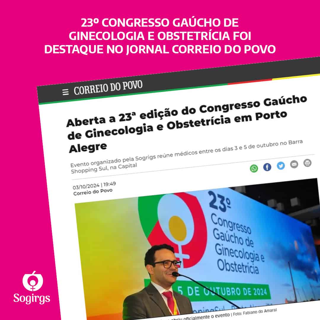 A abertura do 👨‍⚕️👩🏽‍⚕️ 23º Congresso Gaúcho de Ginecologia e Obstetrícia ocorrida na última quinta-feira (03/10) ganhou destaque na cobertura do Jornal Correio do Povo. O evento reuniu mais de 1.300 inscritos e recebeu 470 trabalhos inscritos, sendo um dos maiores eventos da especialidade no país.