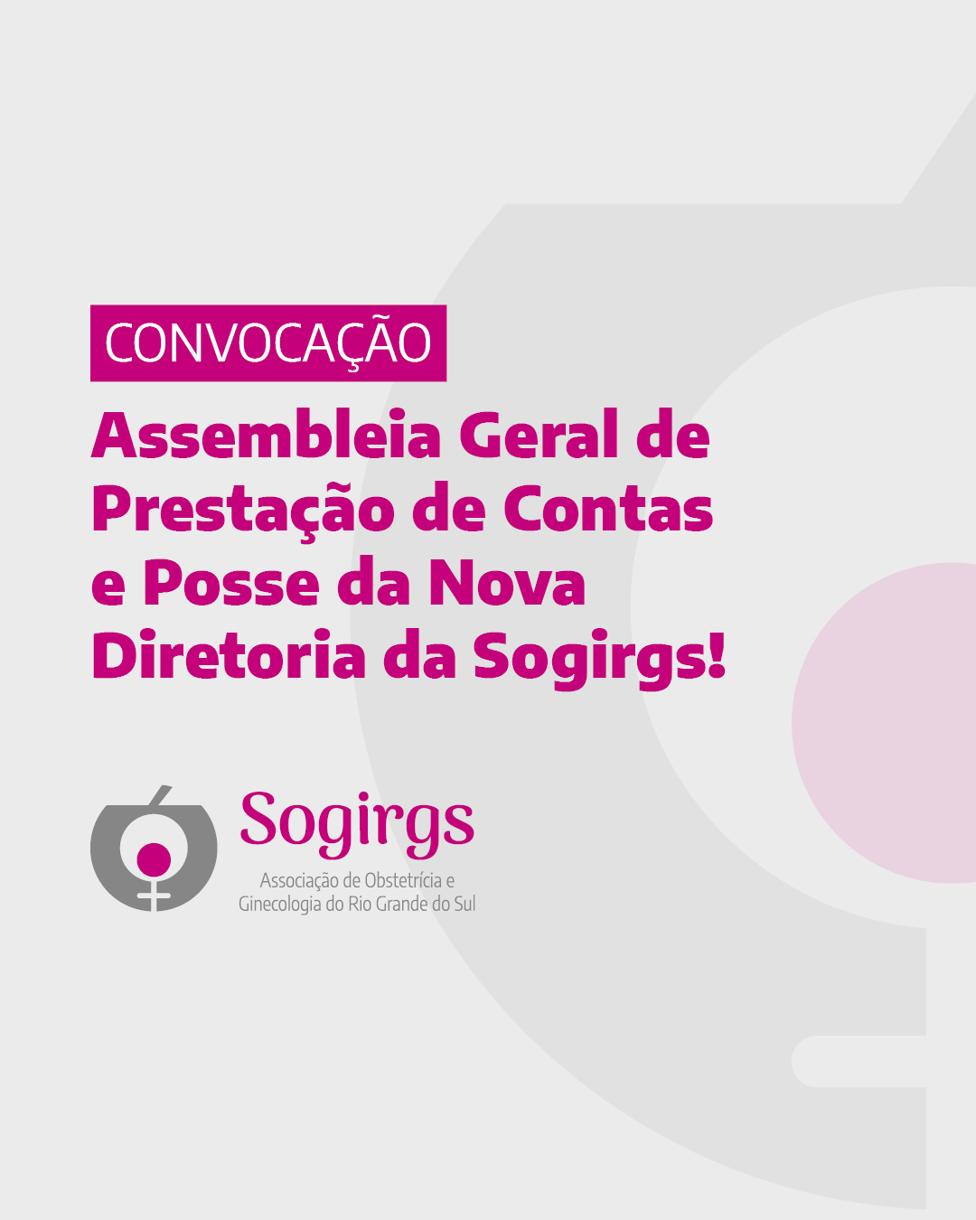 Convocação: Assembleia Geral de Prestação de Contas e Posse da Nova Diretoria da SOGIRGS!