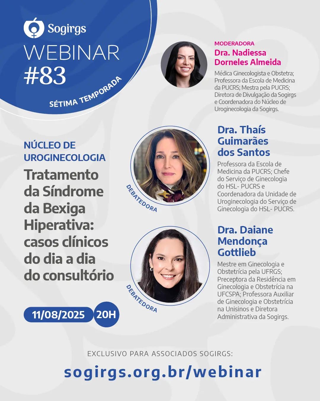 Na próxima segunda-feira (11/07), às 20h, acontecerá o Webinar promovido pelo Núcleo de Uroginecologia da Sogirgs, intitulado “Infecção Urinária Recorrente: Casos Clínicos do Consultório”, com a participação das debatedoras: Dra. […]