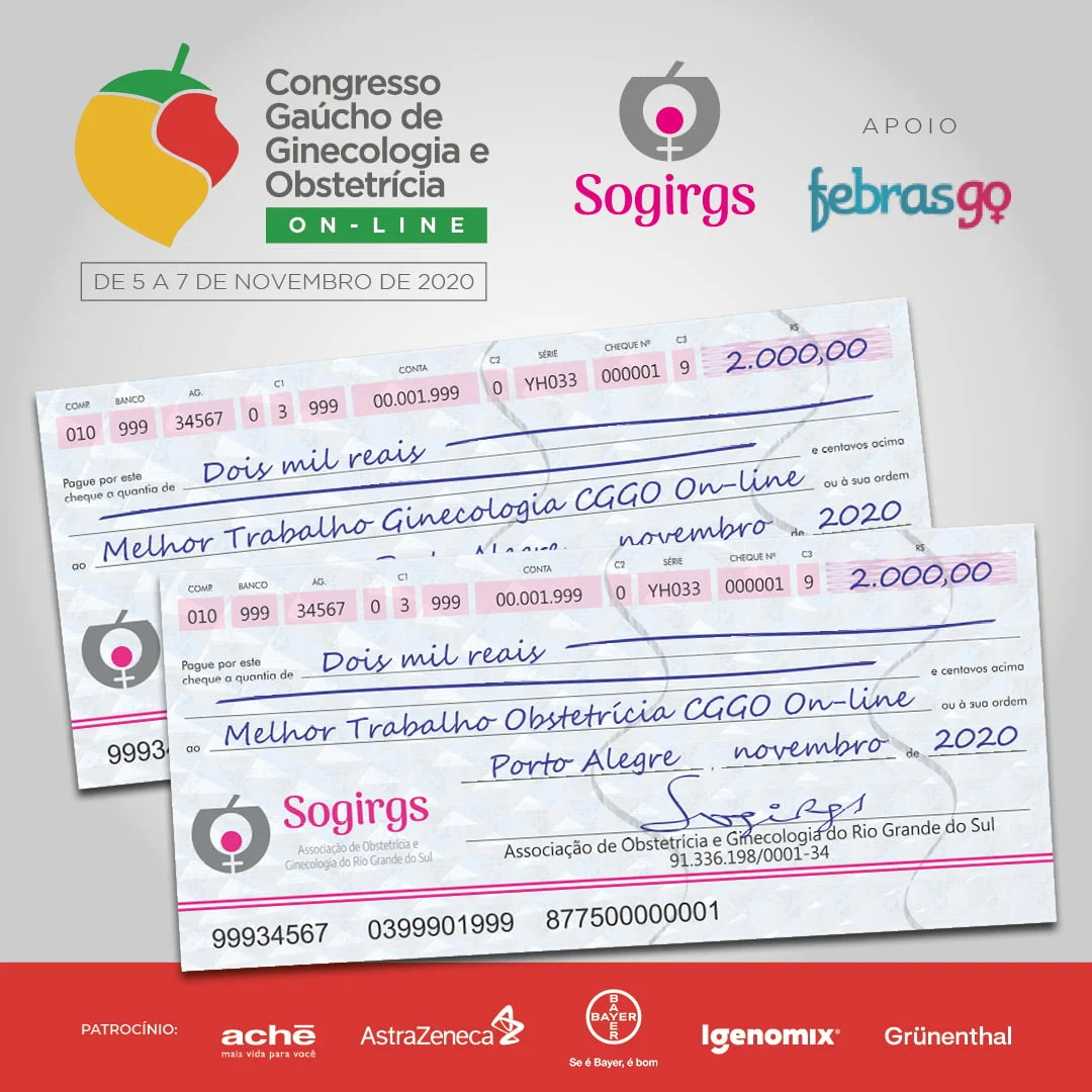 A cerimônia de premiação dos trabalhos científicos do Congresso Gaúcho de Ginecologia e Obstetrícia Online ocorreu na manhã do dia 07/11 ao final do evento. Cada categoria recebeu o prêmio de R$2.000,00.